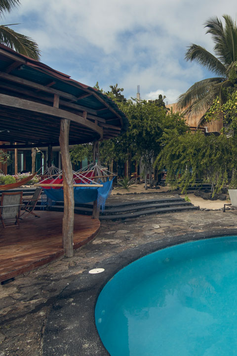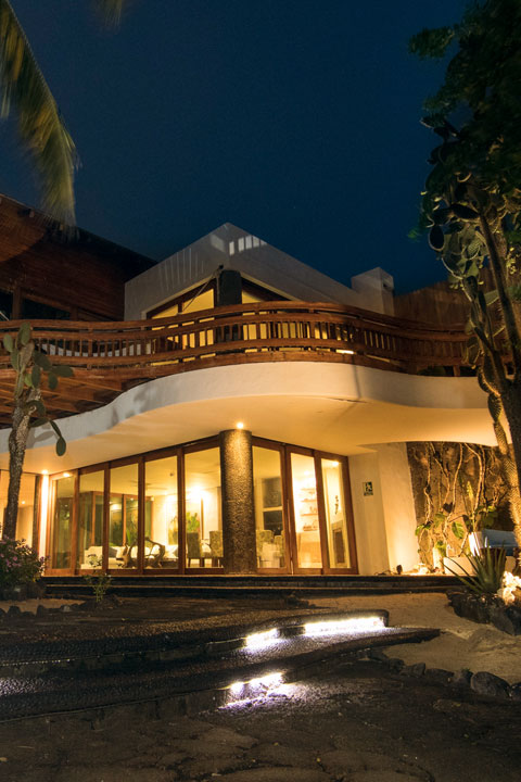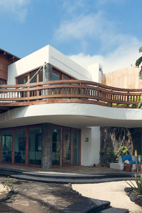 La casa tiene jardines frontales y posteriores en los que se encuentran la mayoría de las especies endémicas e introducidas en las islas Galápagos y al frente, formaciones rocosas de lava donde se puede observar con facilidad, incluso en los propios jardines, iguanas, lobos marinos circundando por los alrededores y aves de toda naturaleza que, incluso, anidan en los mangles adyacentes a la casa.